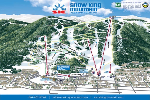 Snow King is a smaller family ski area, located just steps from downtown Jackson. Know locally as the "Town Hill," the area offers five lifts servicing 400 acres of skiable terrain. You will find a vertical of over 1,500 feet, with several steep runs near the top and some nice cruisers toward the bottom....more