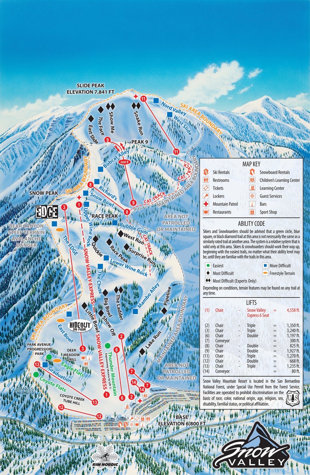 As the longest continually operating mountain destination in Southern California (est. 1924), Snow Valley is known for its storied past, easygoing atmosphere, and remarkable mountaintop views that span as far as the Pacific Ocean on especially clear days. With 240 acres to explore, Snow Valley has something for everyone, from the steeps of Slide Peak to the recently expanded beginner area, as well as Southern California’s only lift-served tube park and high-speed six-seat lift, The Snow Valley E...more