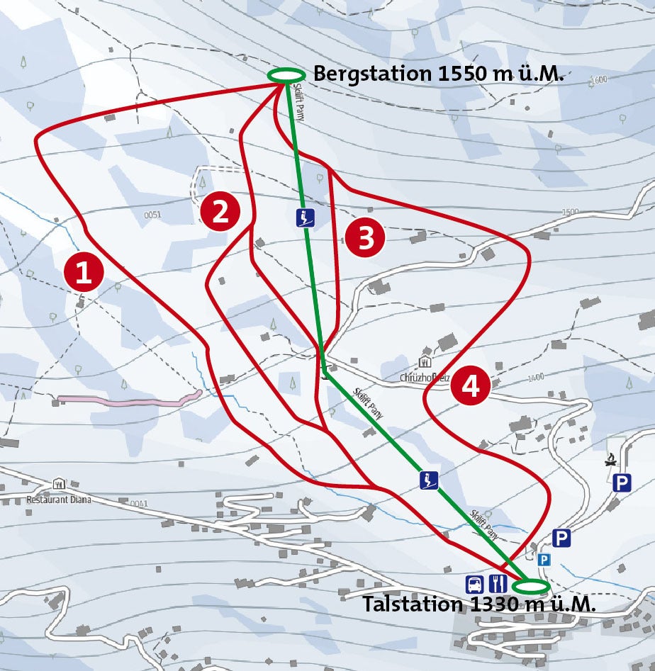 St. Antoenien is a cosy Walservillage in Praettigau, which is located at a highness of 1420 metres. Whoever is on skiing vacation in Graubuenden, finds his or herself apart of mass tourism. The skiing area St.Antoenien is very suitable for families and rookies. A village-lift, which has a length of about 1300 metres, brings wintersport fans to the slopes. Furthermore skiing vacation in St. Antoenien is deemed as budget-priced. The valley is also known for its touring ski tracks, which can be fou...more