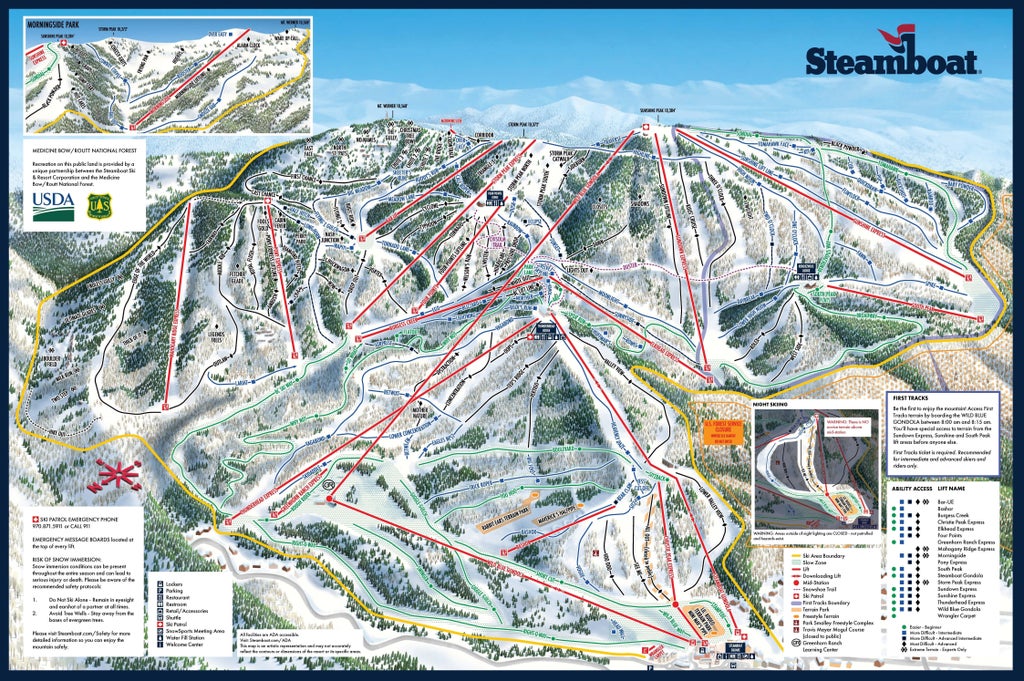 Founded in 1963, Steamboat Ski Resort, located just outside of Steamboat Springs, is situated across seven mountain peaks within the Park Range and overlooks the Yampa Valley. The area has a rich western heritage and cowboy vibe that's celebrated throughout many annual events held on the mountain and...more