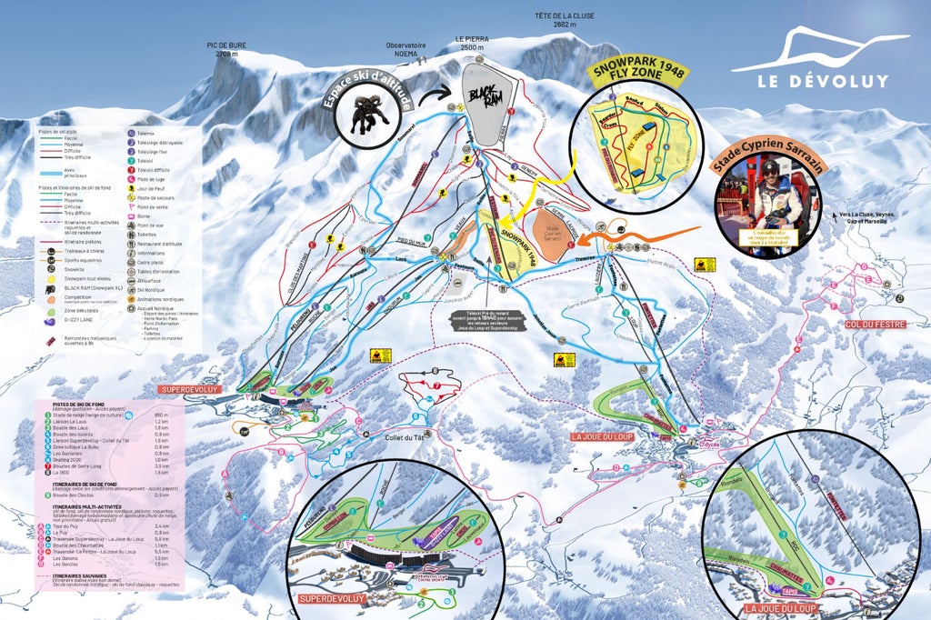 At 1000 metres in altitude offering close to 100 km of marked ski runs, SuperDévoluy / Pra Loup is one of the largest ski areas in the Southern Alps.