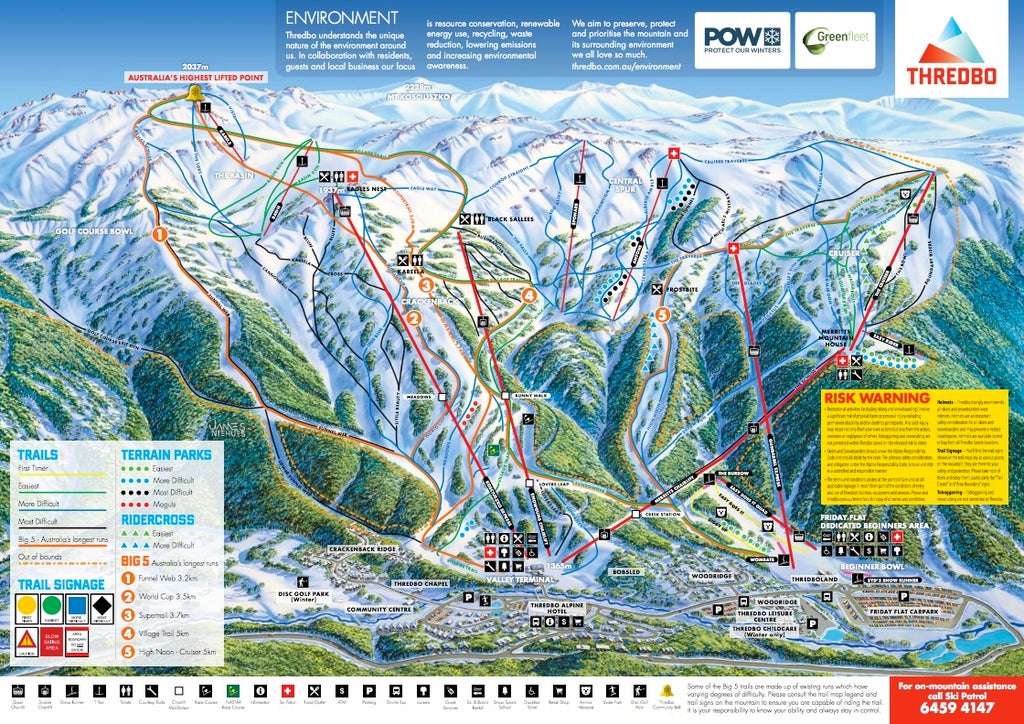 Thredbo Ski Resort is located entirely within the boundaries of Kosciuszko National Park along the Great Dividing Range in New South Wales, Australia. Thredbo is a great access point for those looking to summit Australia’s highest point, Mt. Kosciuszko, via the Kosciuszko Express chairlift.