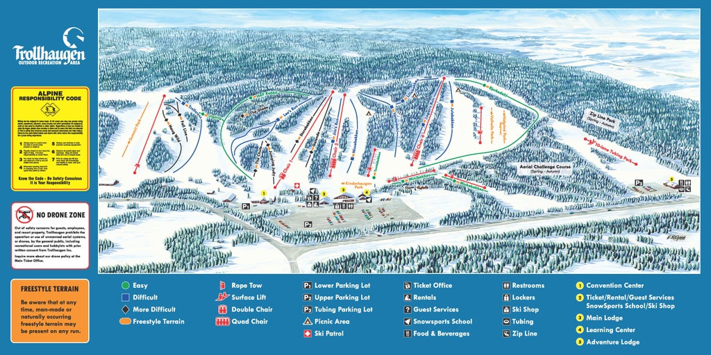 Trollhaugen, located 50 minutes North of Minneapolis - St. Paul in Dresser, WI, offers skiing and snowboarding on 22 runs, 4 terrain parks, a 2.5km XC trail, 10 lanes of snow tubing, and an all-season zip line park. Open until 3 a.m. every Friday in season with live music in the lounge, Trollhaugen offers "Minnesconsin" residents 100% snowmaking and night skiing/snowboarding all season....more