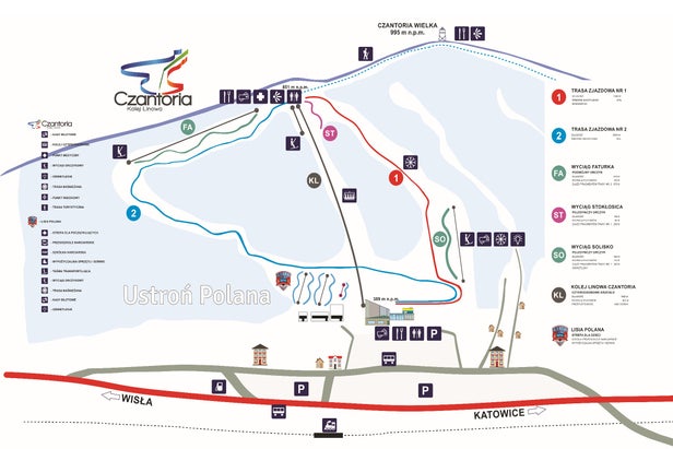 Ski resort Czantoria is located in Ustroń, a city in the valley of the Wisła river, which, in 1882. gained the rank of the SPA resort. In Ustroń is more than 6,000 beds in facilities with different standard. This is the perfect place to relax and practice various forms of tourism and sports activities, such as winter sports: skiing and snowboarding, cross country skiing and paragliding, fishing, mountain running and all kinds of sports games....more