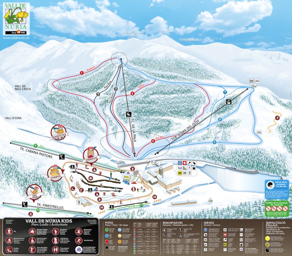 A historic religious centre near the shrine of the Virgin of Nuria, accessed by a rack railway, and surrounded by a ring of high mountains in the Girona Pyrenees....more