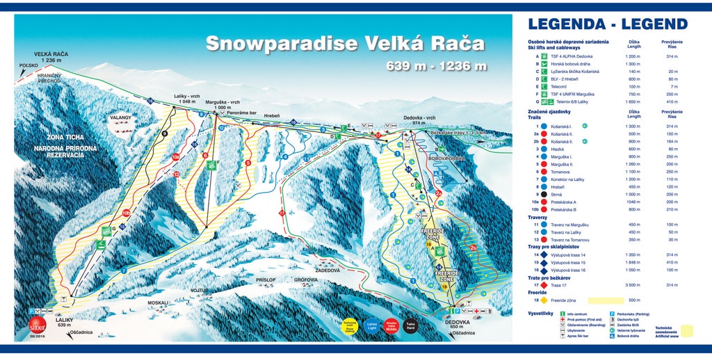 The ski area, located in Kysucké Beskydy is stretched along a mountain ridge up to 1236m ( you can hike to the top if you like) with ski runs descending through the trees in to two valleys. The longest run is the Pretekarska at 2.4km (1.5 miles)....more