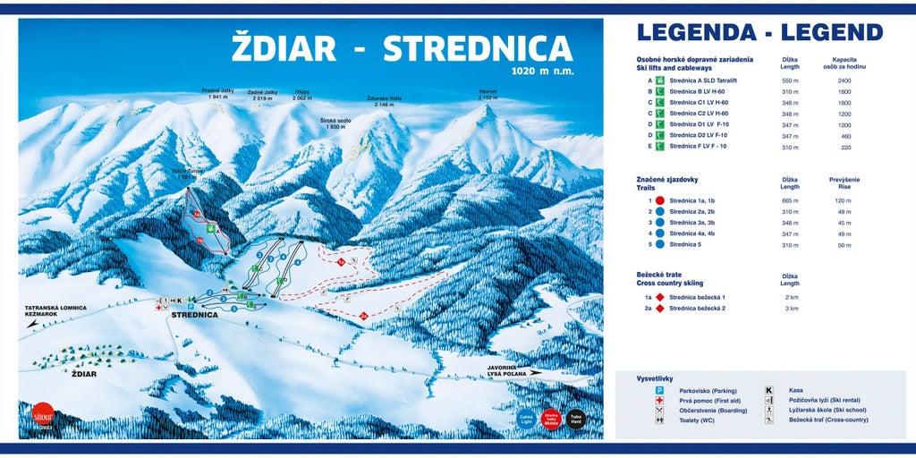 Ski resort Ždiar / Strednica is a part of typical mountain village Ždiar, famous for its folk architecture and folklore. The ski area is situated in between Belianske Tatras, representing the eastern part of the High Tatras and the Spis Magura. Slopes in this ski area are suitable for beginners. Ski Ždiar / Strednica is also visited by skiers from other parts of the High Tatras because of its easy accessibility, high transport capacity and excellent snow conditions. The slopes of this center are...more