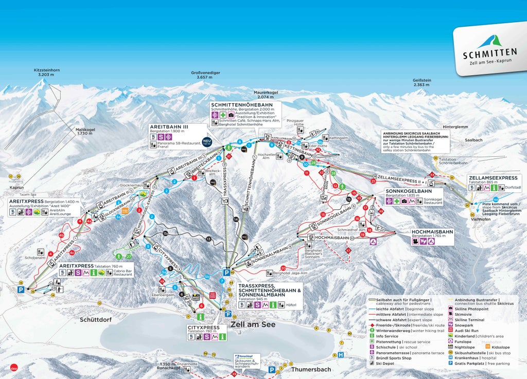 The ski area Zell am See – Schmittenhöhe is well-known for it’s snow reliability and valley runs that span an altitude of 1000 m. The pistes range from easy to difficult and can be prepared with artificial snow.